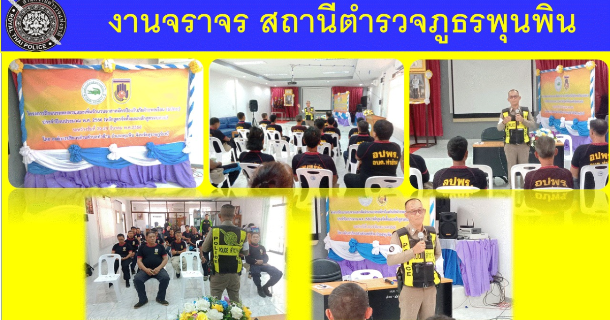 ด.ต.สมาธิ เกลี้ยงมน ผบ.หมู่(ป.)สภ.พุนพิน เจ้าหน้าที่ตำรวจ จราจร และ ด.ต.ไพศาล อินทร์ทอง จนท.ธร.จราจร สภ.พุนพิน เป็นวิทยากรบรรยายให้ความรู้ ความ ปลอดภัยทางถนน และการให้สัญญาณจราจร (สัญญาณมือ)แก่ผู้เข้ารับการฝึกอบรม โครงการอาสาสมัครป้องกันภัยฝ่ายพลเรือน อบต.ท่าข้าม จำนวน 25 คน ณ ห้องประชุม อบต.ท่าข้าม อ.พุนพิน จว.สุราษฎร์ธานี