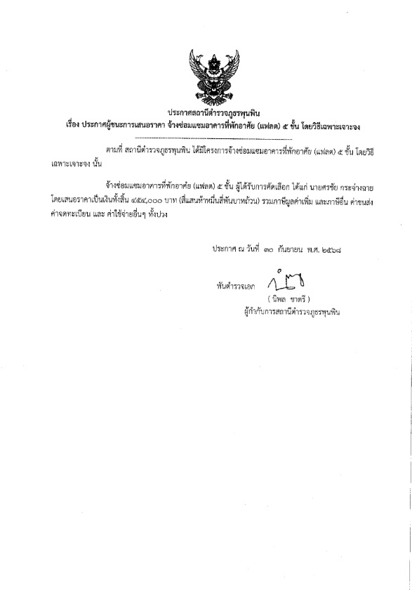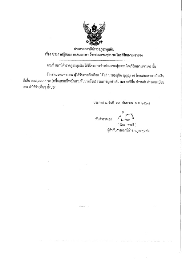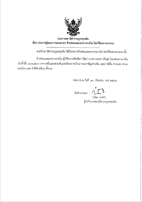 ประกาศผู้ชนะการเสนอราคา จ้างซ่อมแซมอาคารภายใน สถานีตำรวจภูธรพุนพิน 1 ตุลาคม 2568 โดย admpunpin / ข่าวประชาสัมพันธ์ Facebook iconFacebookTwitter iconTwitterLINE iconLine