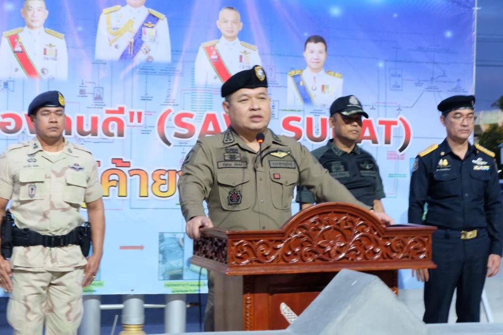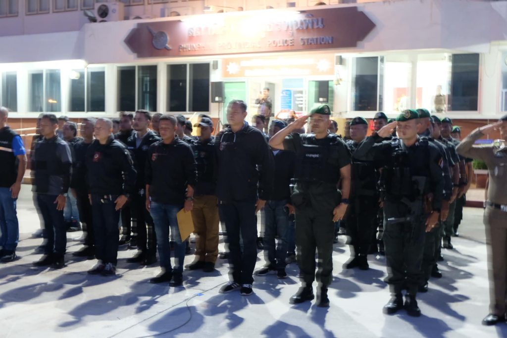 พ.ต.อ.ณัฐชนน เกิดก่อ รอง ผบก.ภ.จว.สุราษฎร์ธานี , พ.ต.อ.ไพศาล สังข์เทพ รอง ผบก.ภ.จว.สุราษฎร์ธานี ร่วมกับ ปปส. , ฝ่ายปกครอง ร่วมปล่อยแถว ปิดล้อมตรวจค้น “พิทักษ์เมืองคนดี”(SAVE SURAT) ภายใต้ยุทธการเด็ดปีกผู้ค้ายาเสพติด ณ หน้าอาคารที่ทำการ สภ.พุนพิน อ.พุนพิน จ.สุราษฎร์ธานี