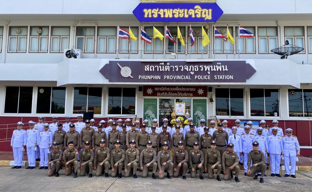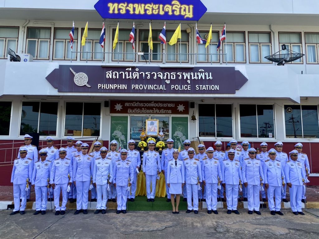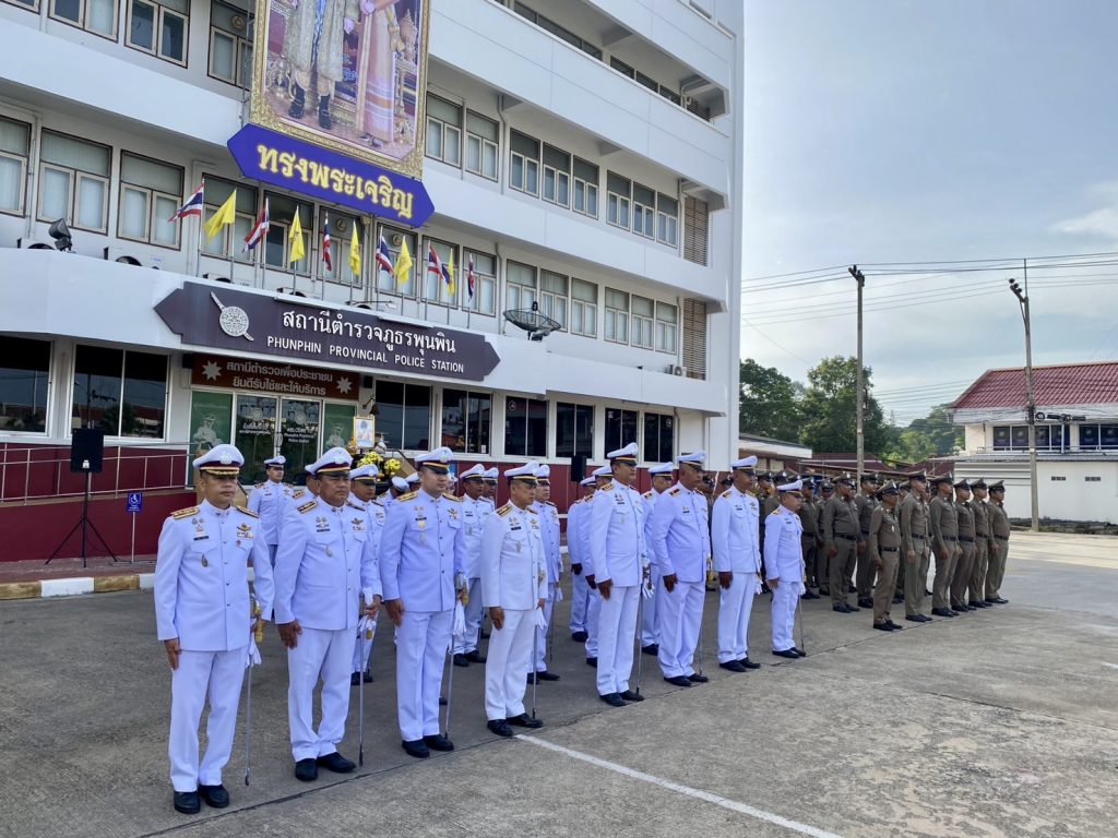 โดยมี พ.ต.อ.นิพล ชาตรี ผกก.สภ.พุนพิน, พ.ต.ท.สุพจน์ เทือกสุบรรณ รอง ผกก.ป.สภ.พุนพิน,พ.ต.ท.ชุมพล คุ้มภิรมย์ รองผกก.สส.สภ.พุนพิน,พ.ต.ท.มานิตย์ ทองชั่ง สว.สส.สภ.พุนพิน,พ.ต.ท.หญิง วาสนา ธีรกุล สว.อก.สภ.พุนพิน,พ.ต.ต.ศรายุทธ เพชรหนู สวป.สภ.พุนพิน,พ.ต.ต.นราทิพย์ มีเทพ สวป.(ชส.)สภ.พุนพิน และข้าราชการตำรวจ สภ.พุนพิน ร่วมพิธีฯ ณ ลานจอดรถ บริเวณหน้าอาคารที่ทำการ สภ.พุนพิน