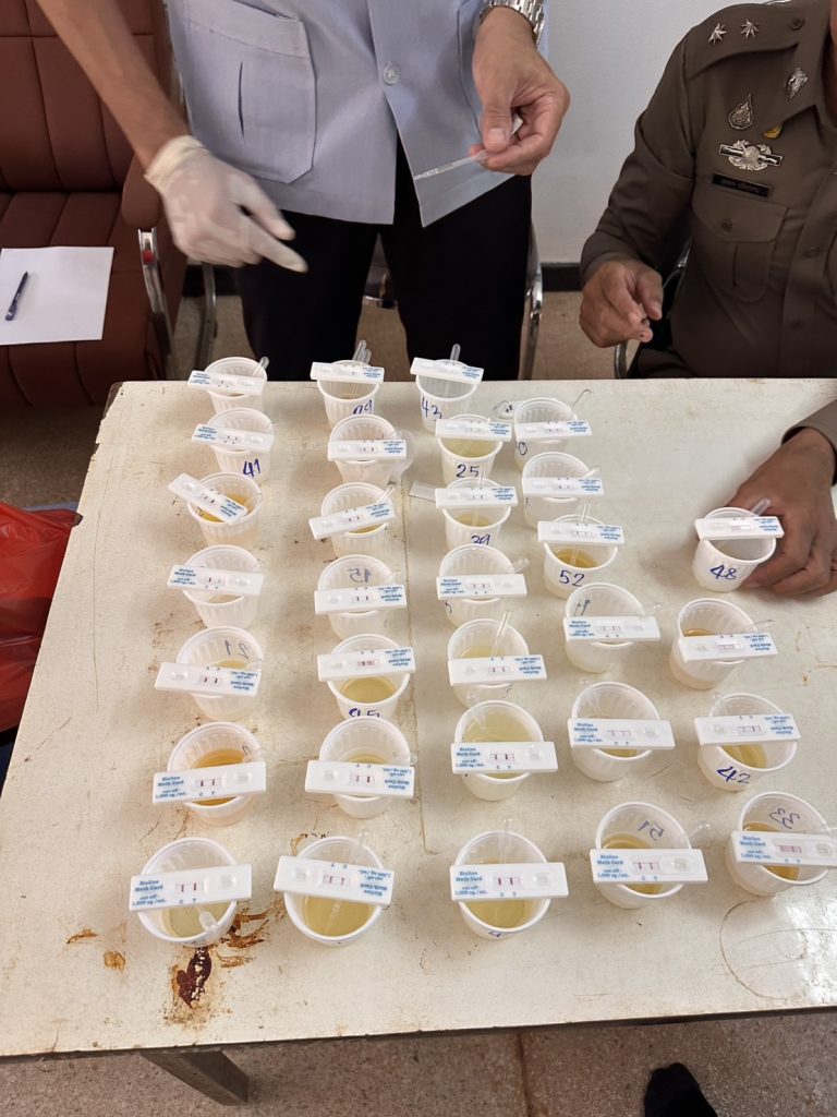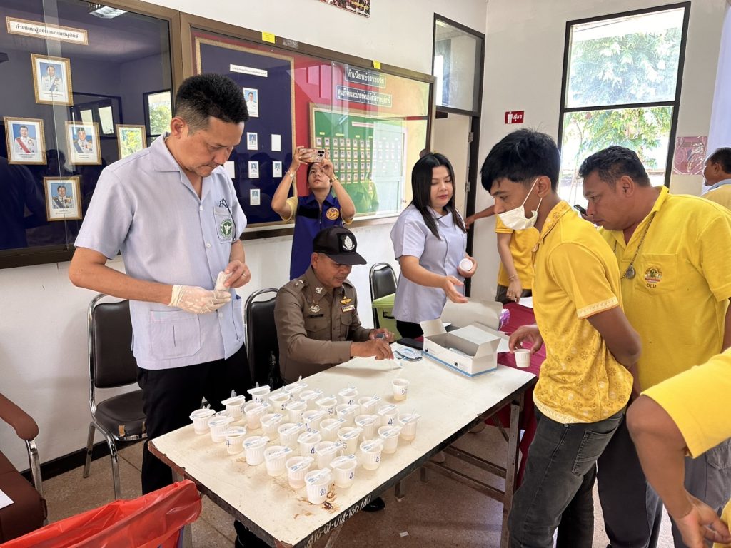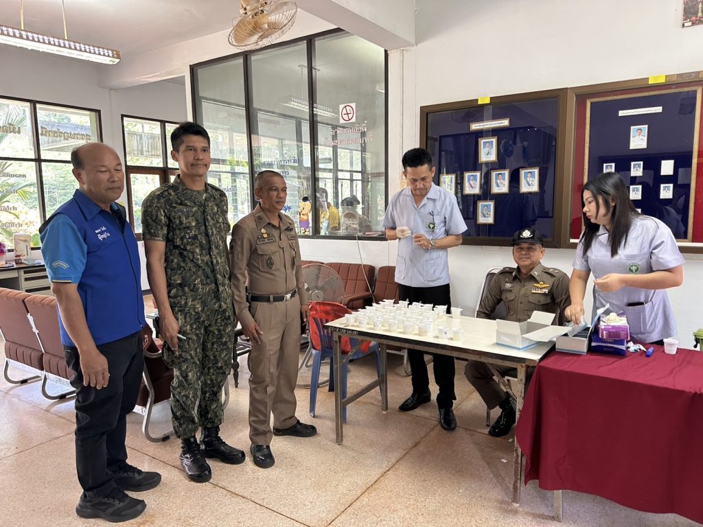 พร้อมกำลัง ตำรวจ ฝ่ายปกครอง ร่วมกันตรวจสารเสพติดในร่างกายพนักงานเจ้าหน้าที่ศูนย์วิจัยและบำรุงพันธ์ุสัตว์สุราษฎร์ธานี ณ อาคารสำนักงานศูนย์วิจัยและบำรุงพันธ์ุสัตว์สุราษฎร์ธานี ม.9 ต.มะลวน อ.พุนพิน จ.สุราษฎร์ธานี