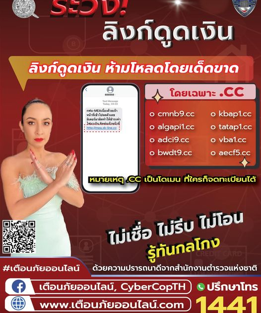 เตือนภัย สังเกตดีๆ URL .CC อาจเป็นลิงก์ดูดเงิน 20 มิถุนายน 2566 โดย admpunpin_1 / ข่าวประชาสัมพันธ์,ข่าวประชาสัมพันธ์,ข่าวฝากประชาสัมพันธ์ ตำรวจไซเบอร์เตือนภัย สังเกตดีๆ URL .CC อาจเป็นลิงก์ดูดเงิน โปรดสังเกตชื่อเว็บไซต์ หรือ URL อย่างละเอียด ไม่คลิกลิงก์ที่แนบมากับอีเมล หรือ SMS ไม่เชื่อ ไม่รีบ ไม่โอน Facebook iconFacebookTwitter iconTwitterLINE iconLine