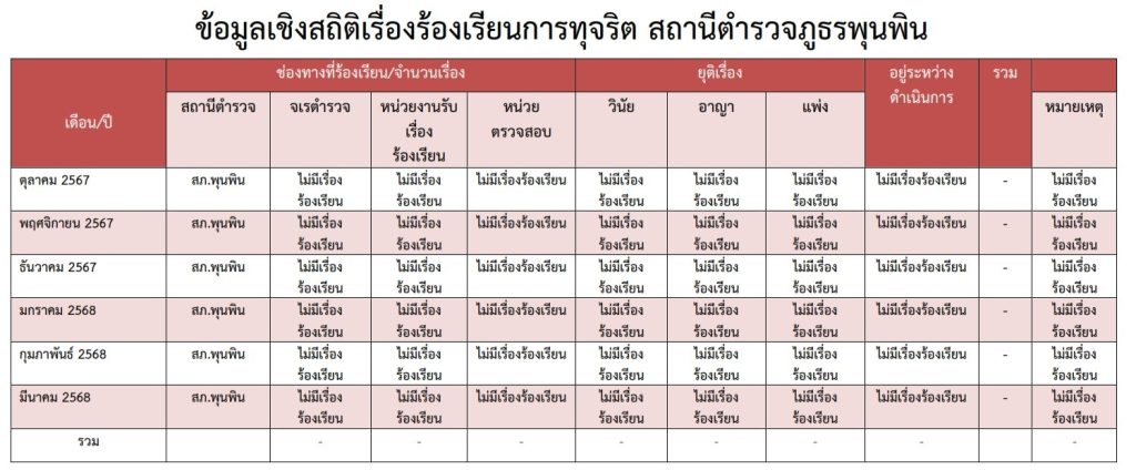 O17 ช่องทางการแจ้งเรื่องร้องเรียนการทุจริตและข้อมูลเชิงสถิติเรื่องร้องเรียนการทุจริตประจำปี